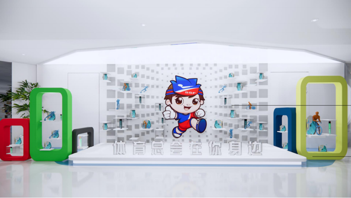 集中展示各体育社会组织的优秀文创和宣传产品,展现组织文化、传递体育精神。背景是“奔跑的申体宝宝”,搭配“体育总会在你身边”立体字和奥运五环装置,妥妥的访客合影C位,来办事别忘了拍张照哦!