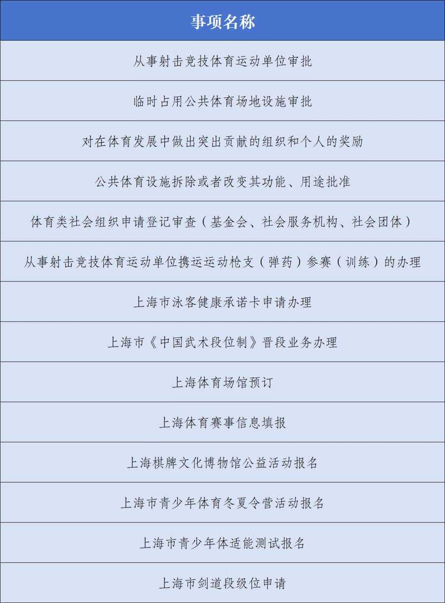 服务大厅办理事项涵盖体育领域行政许可、行政奖励、行政确认、行政备案、公共服务等20余项高频业务。